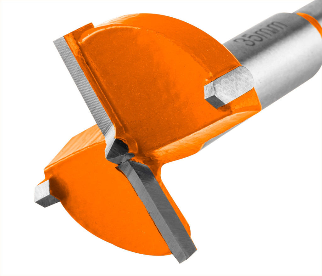 Zsanérfúró készlet, sablon + fúró 35 mm. Kiváló minőségű, 35 mm átmérőjű fenékfúróból áll, amely geometriáját tekintve alkalmas zsanérokhoz való mélyedések készítésére.