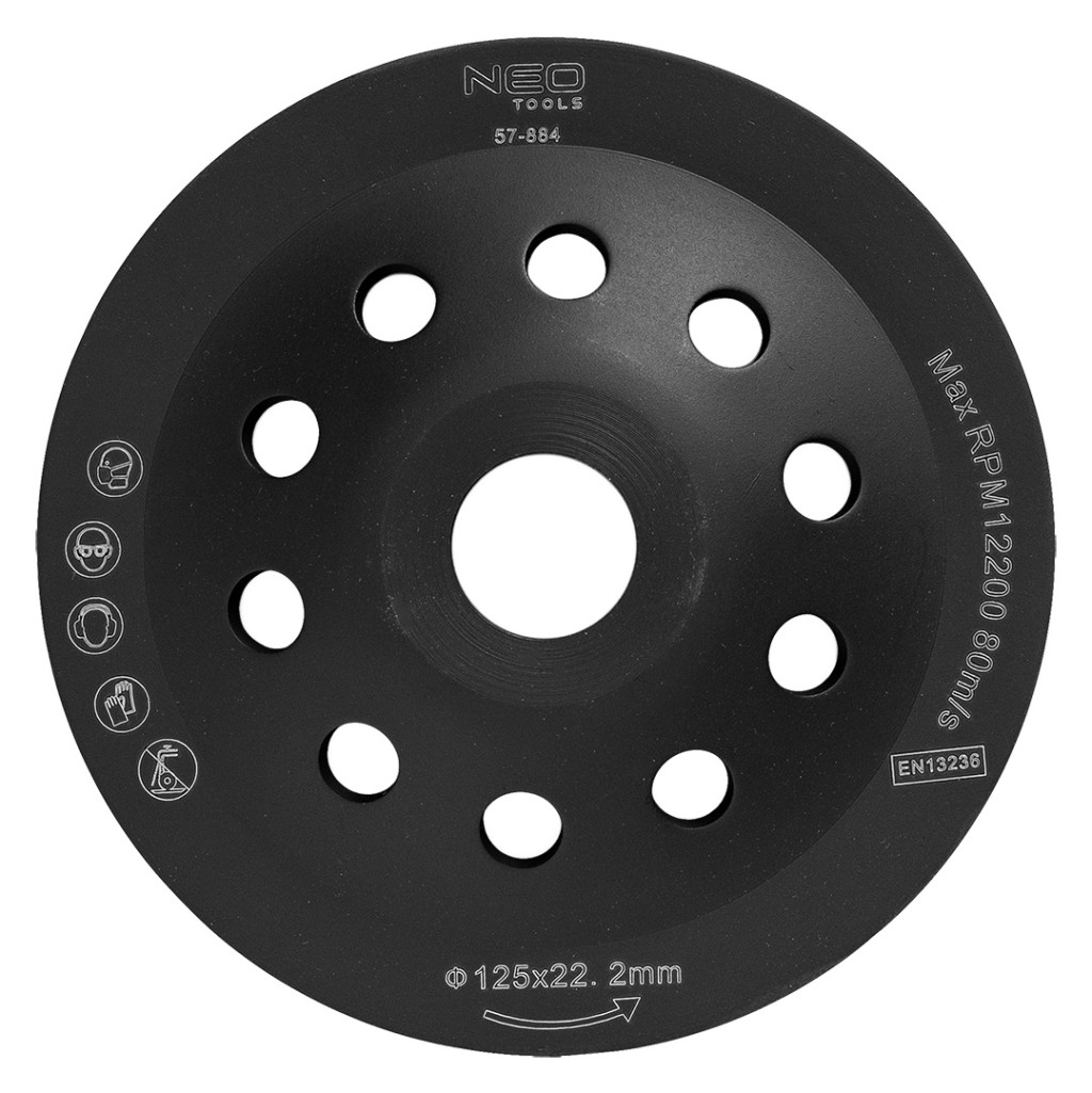 A Neo gyémánt csiszolótárcsa, ásványi anyag (beton, gránit, márvány.) alapú felületek csiszolására szolgál. A szimpla szegmenssel hatékonyan végezhető az ásványi felületek nagyoló csiszolása. A tárcsa kialakítása lehetővé teszi a sarokcsiszolókra rögzítést.