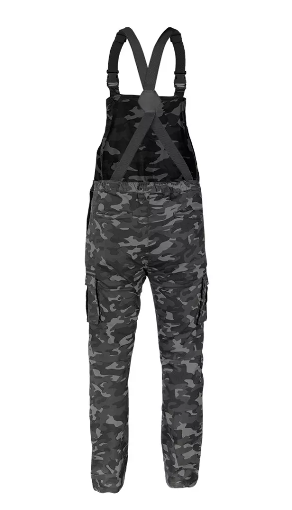 Neo Camo Urban kantáros munkanadrág.Anyaga 60% pamut, 37% poliészter és 3% elasztán. Selyemszövetből készülnek, súlyuk 255 g/m2. A nadrág terepmintás a szürke szín árnyalataiban. Többfunkciós zsebekkel rendelkeznek - többek között személyazonosító zsebbel és tolltartó zsebbel. Az elasztikus derékpánt és az elasztikus merevítők jobb illeszkedést tesznek lehetővé. A nadrágon egy további tépőzár is található,amelyre a saját logódat rögzítheted. Nagyszerű választás mert munkában és a munkán kívül is használható.A termék DIN 340 szabvány szerinti kivitelezése és az európai tanúsítványa minőségének garanciája.
