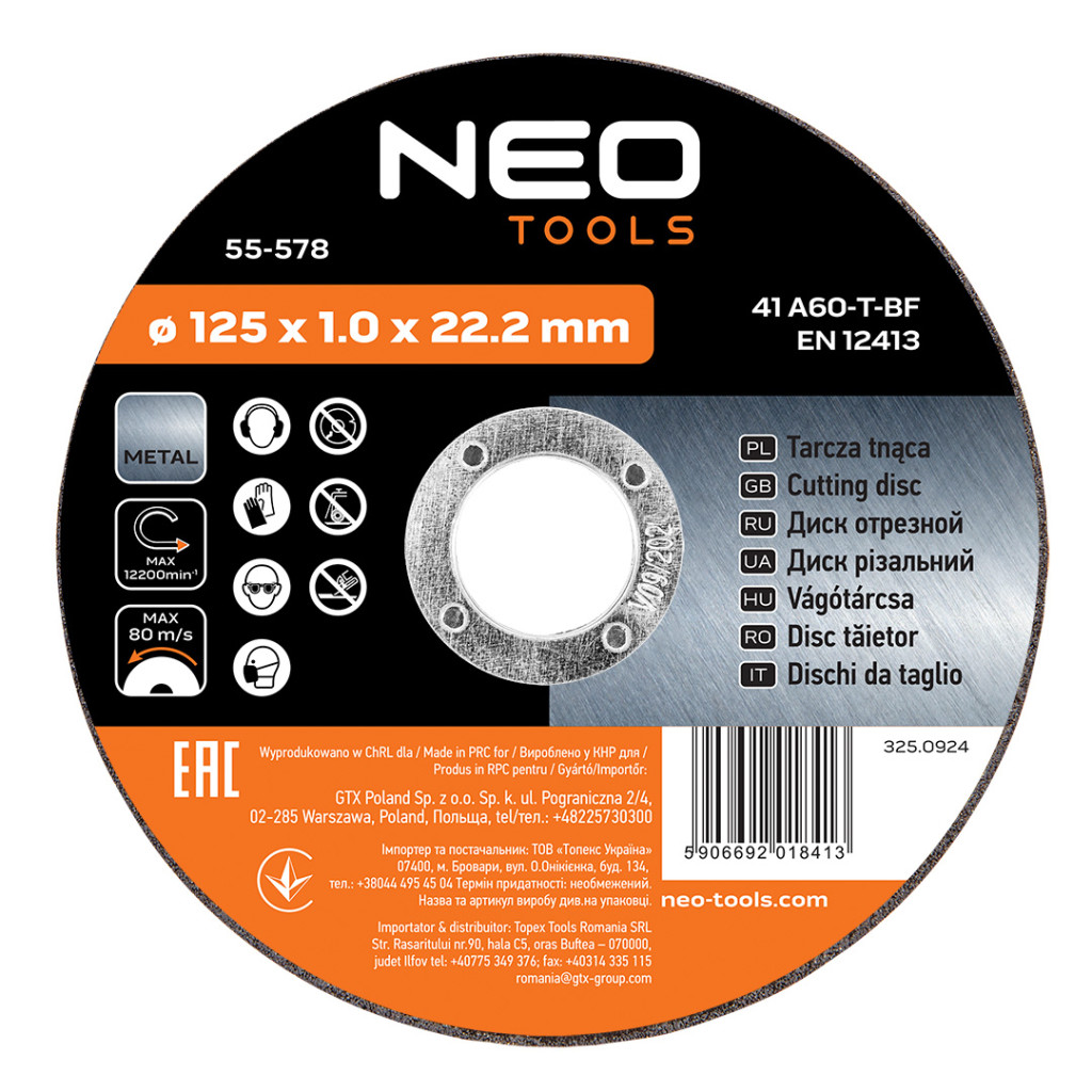 Neo vágókorong 125x1x22,2 mm 10 részes fóliában