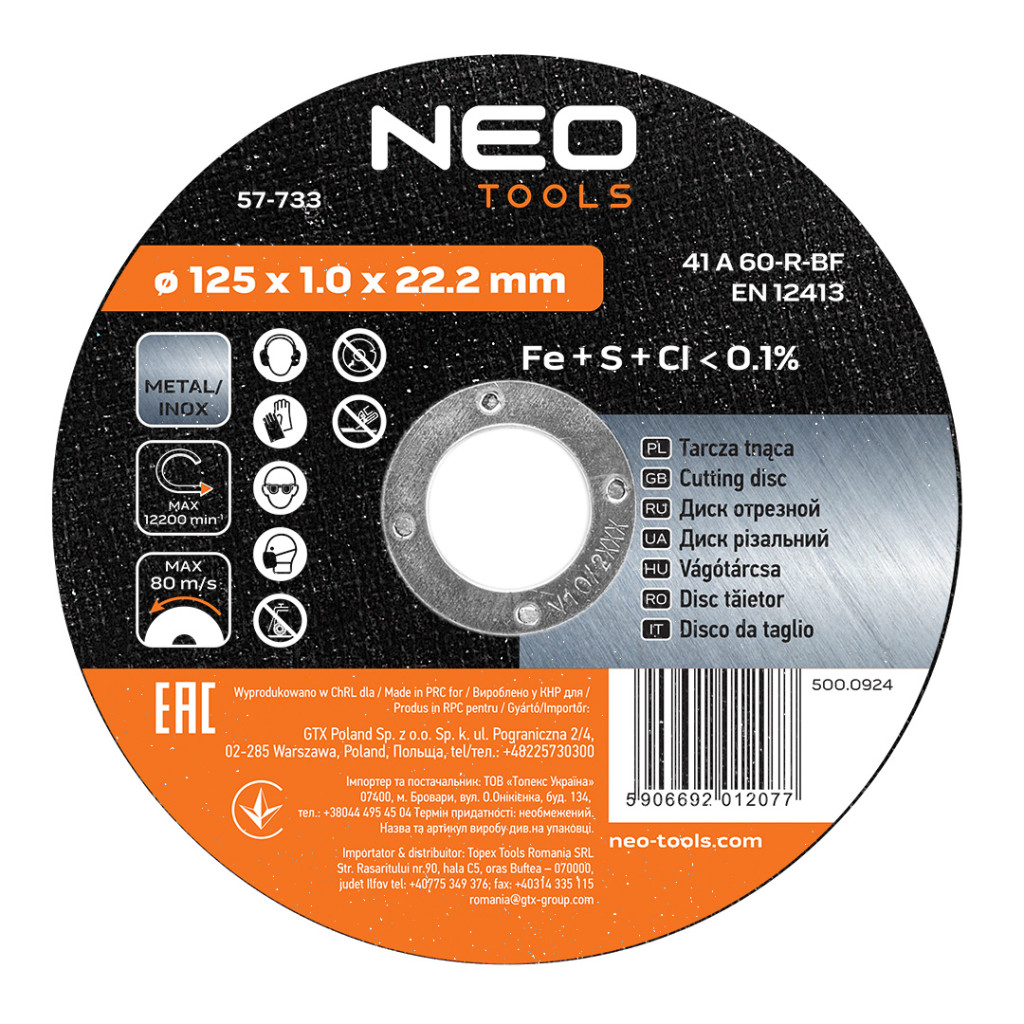 Neo vágókorong 125x1x22,2 mm, inox