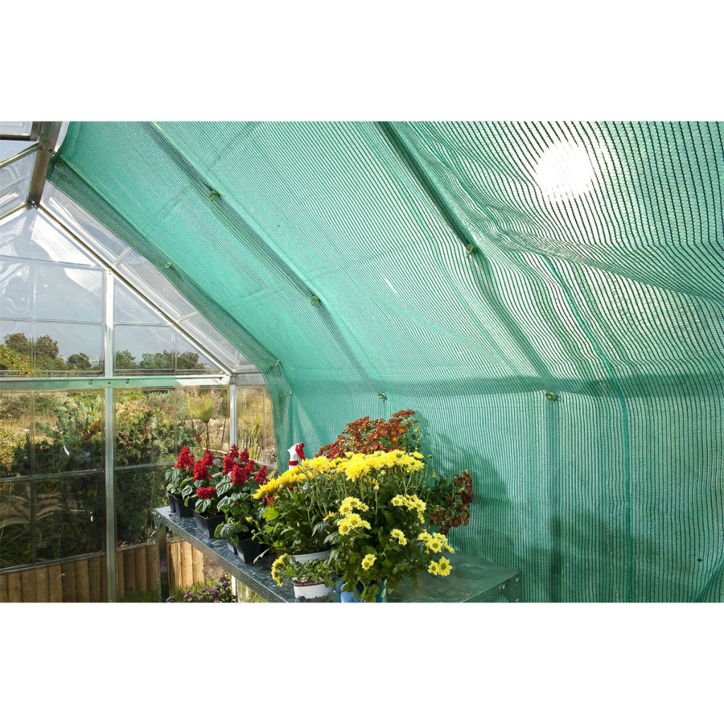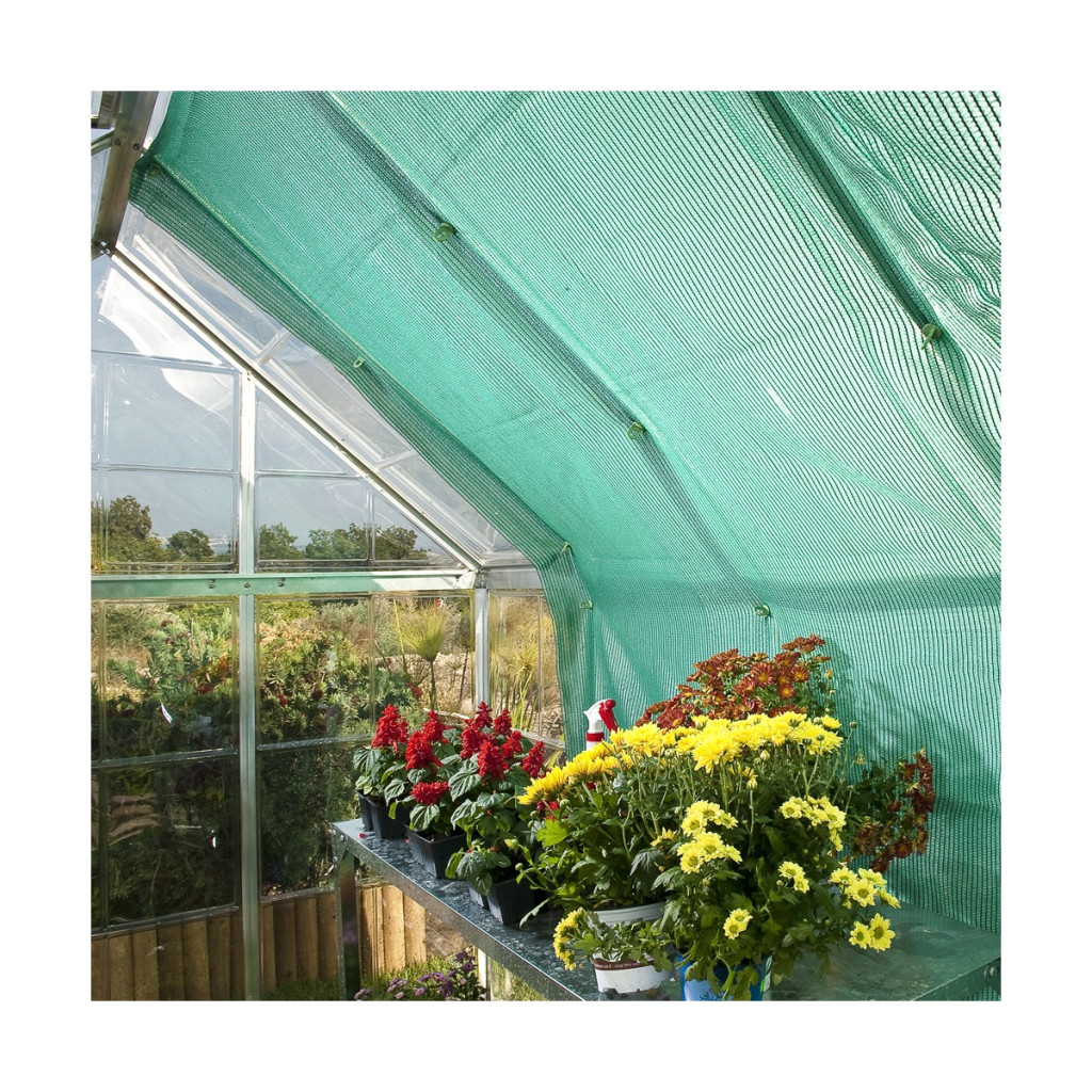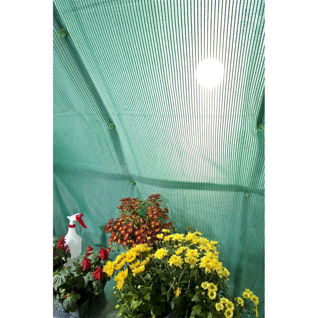 Azon növények számára, amelyek nem igényelnek közvetlen napsugarat, vagy azon növények érdekében, ahol fokozottan szükséges a melegtől való védelem, kiválóan alkalmazható a könnyű, textilárnyékoló, amely a napsugaraknak akár 70%-át is képes elnyelni. Az árnyékoló mérete 230 x 265 cm és egyszerű mechanizmussal rögzíthető az üvegház falaihoz.