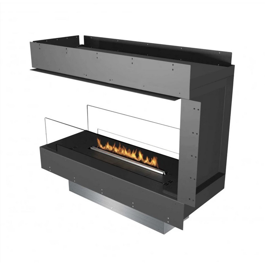 A Planika Forma 1000 szobaosztó egy beépített kandalló, ahol a lángok három oldalról láthatók.