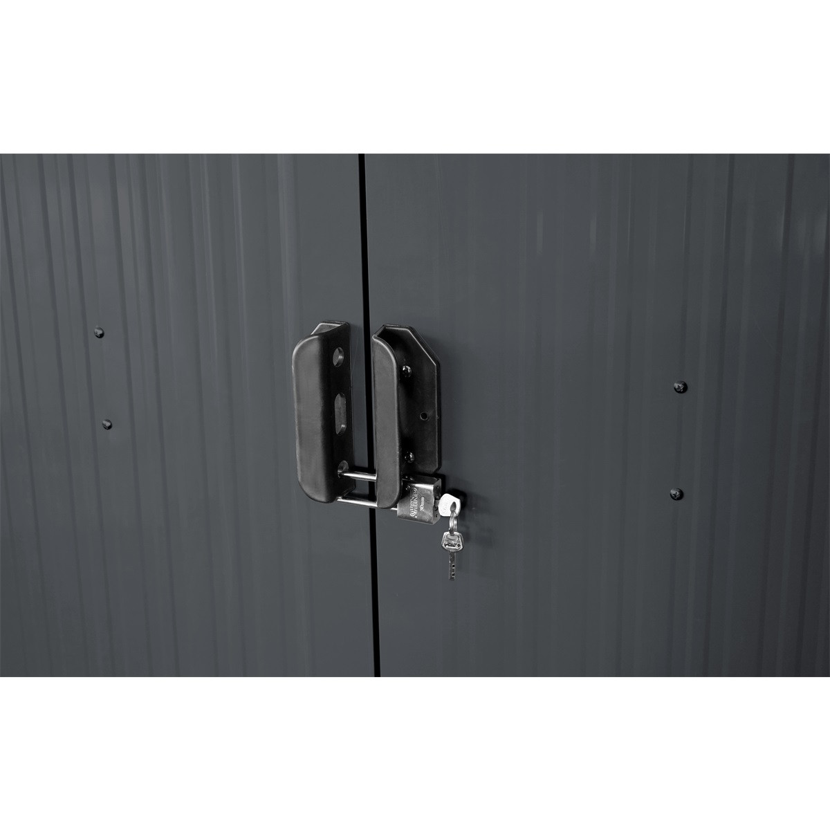 Riwall 6x8 antracit - fém kerti tároló 2,4 x 1,7 m nyeregtetővel RMSA