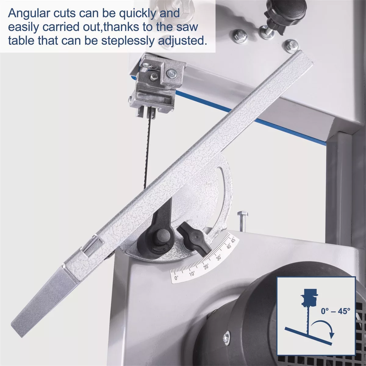 Szalagfűrész, ideális megoldás minden hobbi felhasználó részére, akiknél felmerül az igény a gyors és pontos vágásokra puha-, vagy keményfában, 0° - 45° fokban dönthető és 380-450 mm tartományban szélesíthető.
