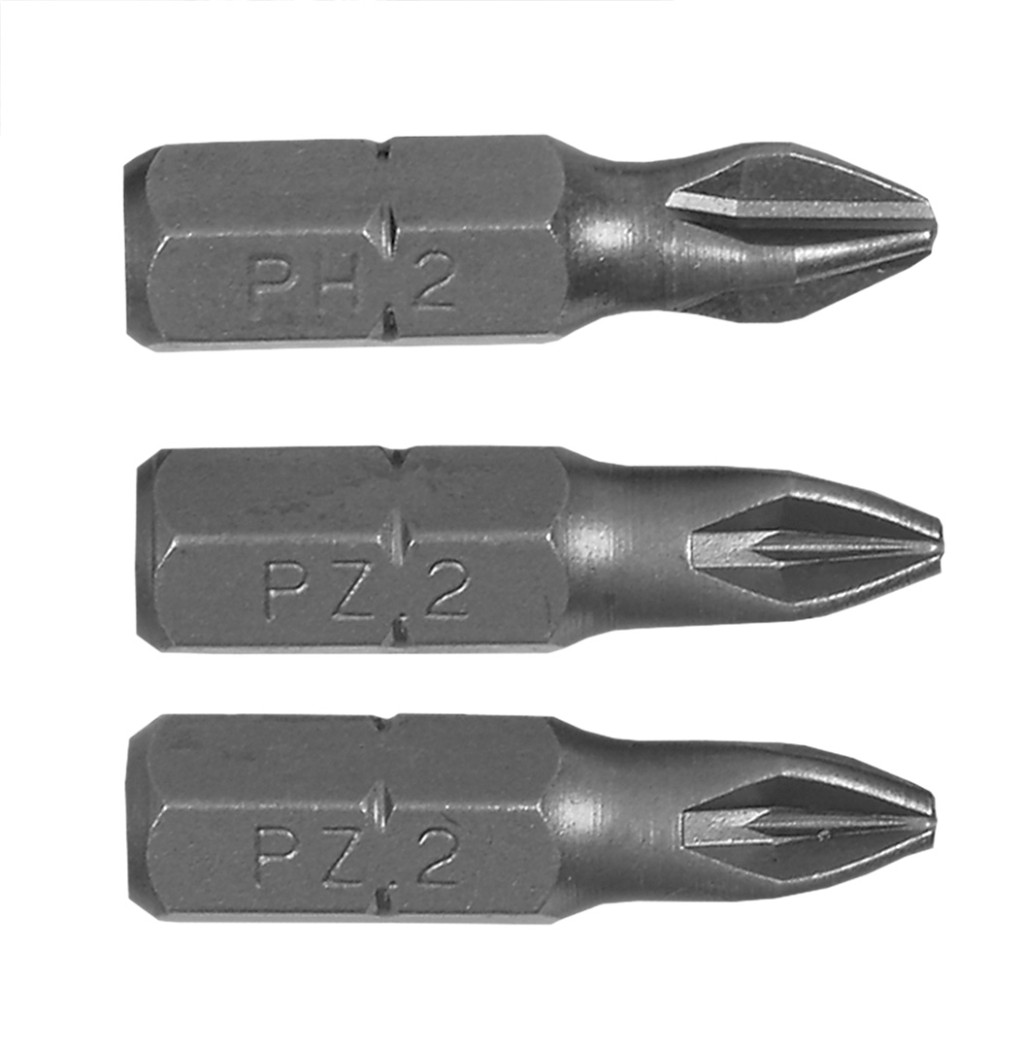 Befogószár készlet, 5 db‑os, 1/4,65 mm, 4 db 25 mm‑es csavarhúzó bit, méretek: 2 x PH2,2 x PZ2