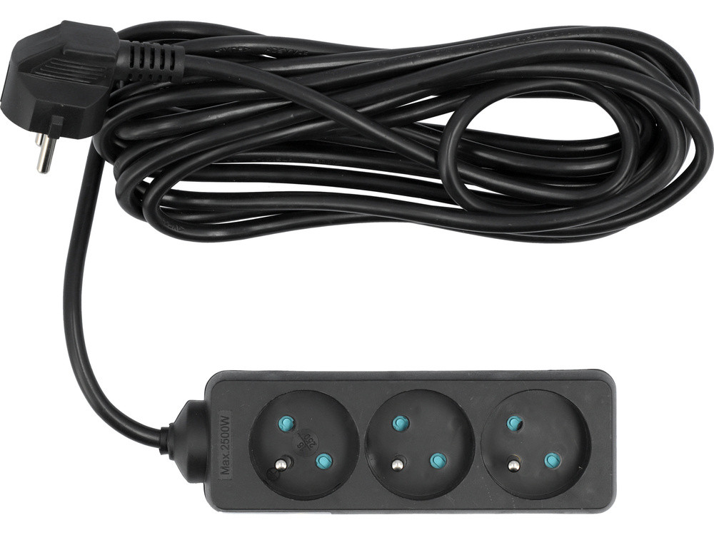 Vorel hosszabbító elosztó hármas, földelt, kapcsoló nélkül 5 m fekete