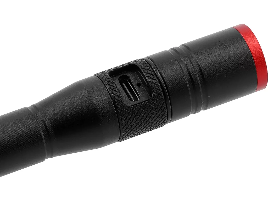 Kis, praktikus vizsgálólámpa nehezen hozzáférhető helyekre: 5 W POWER LED, 3 üzemmód (500 lm/100 m; 280 lm/70 m; 70 lm/30 m), USB Li-Ion 750 mAh, 2 AAA opció, zoom, IPX4, alumínium, 18x158 mm.