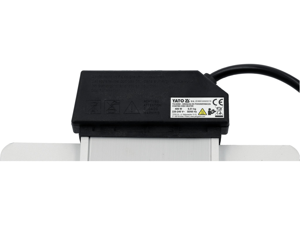 Ételmelegítőkhöz való fűtőelem a professzionális gasztronómia megbízható felszerelésének része, amely a felszolgált ételek megfelelő hőmérsékletének fenntartására szolgál. Az edény alá szerelve egyenletes hőátvitelt biztosít anélkül, hogy közvetlen érintkezés lenne az étellel, ami hozzájárul a stabil működéshez és a használat biztonságához. Masszív alumínium szerkezet jól tűri a büfé-, catering- és hotelkörnyezetben történő intenzív használatot.