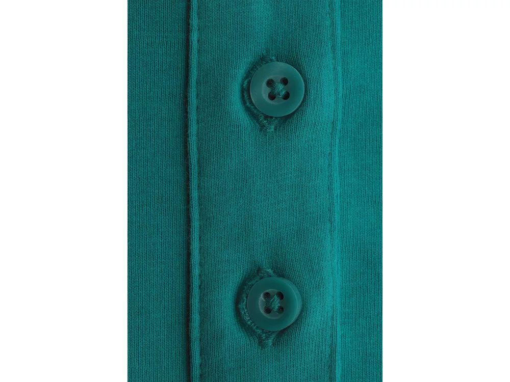 A hagyományos, 100% pamutból készült pólóanyag, valamint a ráncmentes bordás kötött anyagból készült gallér és mandzsetta egyesíti a kiváló minőségű póló kényelmét a pólóingek dekoratív elemeivel.