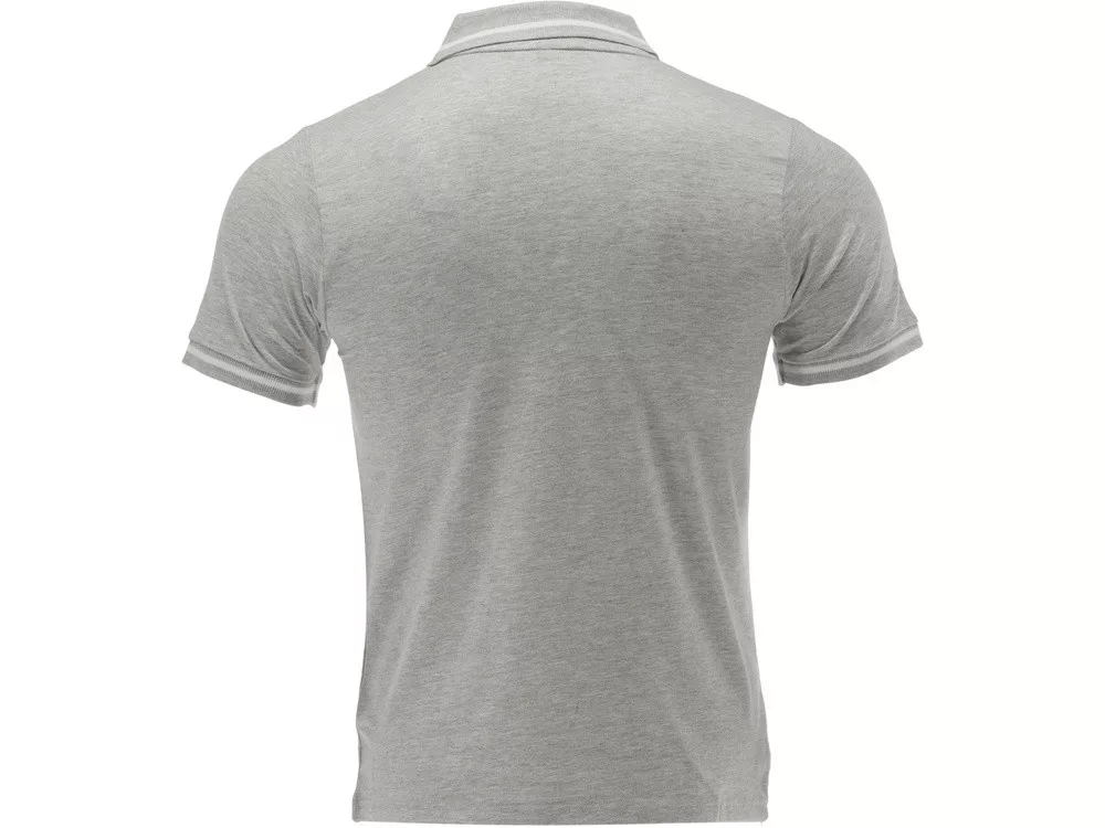 Környakas póló, 100% pamut,ráncmentes bordás kötött anyagból készült gallérral, megbízható overlock varratokkal, szürke színű.
