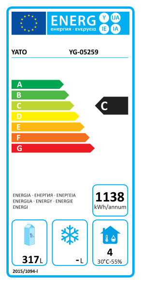 A 230 W teljesítményű oldalsó hűtőegység az R290 hűtőközeget használja 4-es klímaosztályban , 30℃ maximális környezeti hőmérséklettel és 55%-os relatív páratartalommal. Az átlagos éves energiafogyasztás 1138 kWh . 220-240V ~50Hz feszültségről működik. Dixell elektronikus vezérlő digitális hőmérséklet kijelzővel. A készülék ventilátoros hűtéssel és automatikus leolvasztó funkcióval rendelkezik .