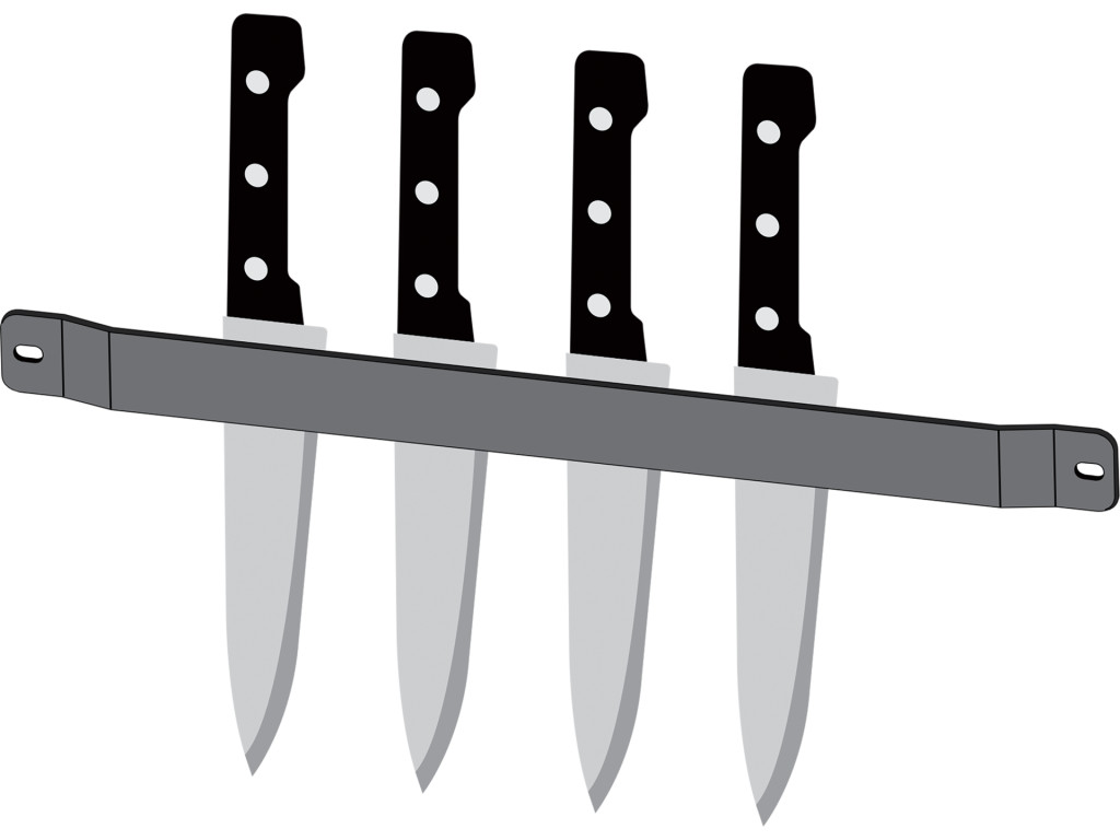 Acél késfogó tartó perforált gázgrill-oldalfalakra szereléshez. Lehetővé teszi több kés felfüggesztését, így rendezett és könnyen hozzáférhető tárolást biztosít grillezés közben.