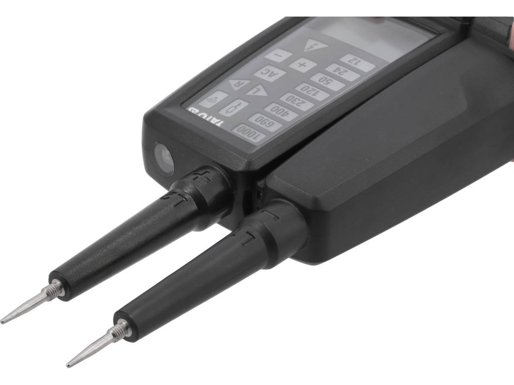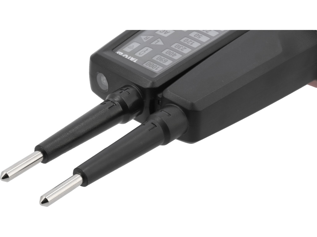 Kétpólusú fibaesés- és feszültségvizsgáló masszív, zárt kivitelű házban, rugalmas, szilikon szigetelésű vezetékekkel. AC és DC feszültséget érzékel és mér 6–1000 V tartományban; az eredményt LCD kijelzőn és LED jelzőlámpákon egyaránt megjeleníti. A műszer alkalmas továbbá fázissorrend-ellenőrzésre háromfázisú rendszerekben, alacsony impedanciás mérésre a zajok kiküszöböléséhez, illetve RCD (érintésvédelmi) kapcsolók működésének tesztelésére 30 mA névleges vagy kisebb áramnál. Elvégezhető vele áramkör folytonosságvizsgálat és ellenállásmérés 1999 Ω-ig. Gyenge megvilágítás esetén a beépített LED zseblámpa segíti a mérést. A biztonságos használatot a zárt, por- és fröccsenő víz elleni védelmet nyújtó IP64-es házsegítése biztosítja. A csomag része a gniazdókban való mérést megkönnyítő, menetes csúcsvédő sapka a szondákra. A műszer megfelel a túlfeszültségi kategóriáknak: CAT III 1000 V / CAT IV 600 V.