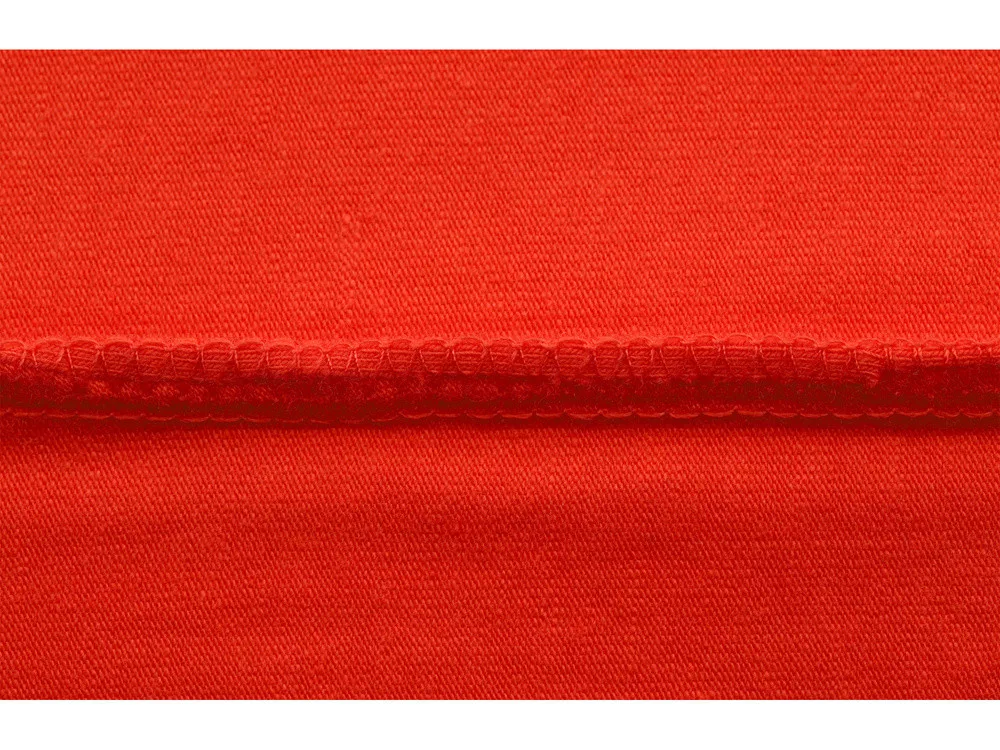 Környakas elasztikus póló, nem korlátozza a mozgást, tartós és megbízható overlock varratokkal, narancs színű.