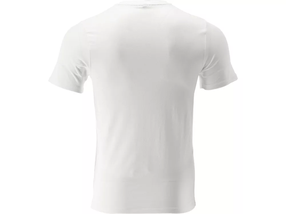 Környakas elasztikus póló, nem korlátozza a mozgást, tartós és megbízható overlock varratokkal, fehér színű.