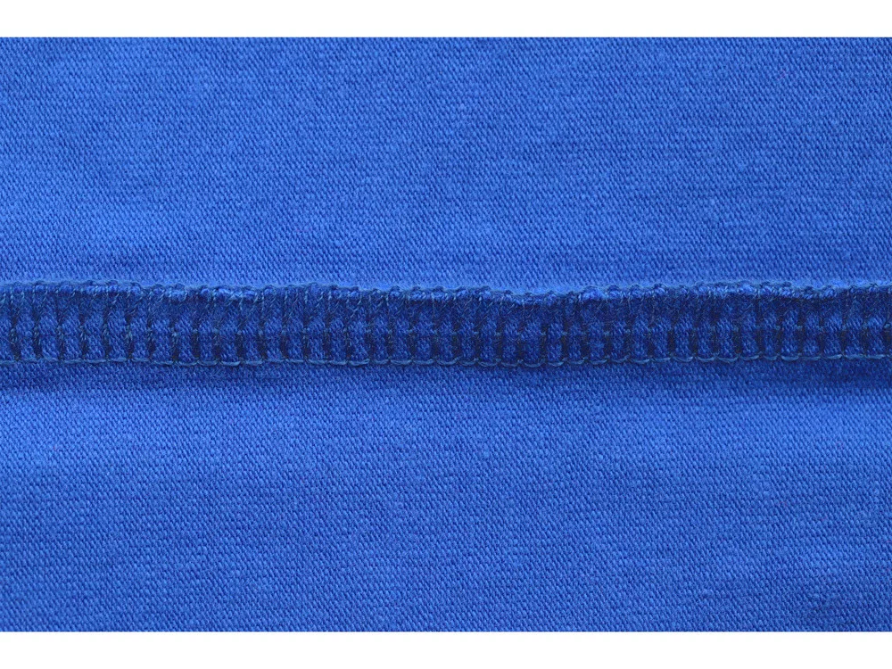 Környakas elasztikus póló, nem korlátozza a mozgást, tartós és megbízható overlock varratokkal, kék színű.