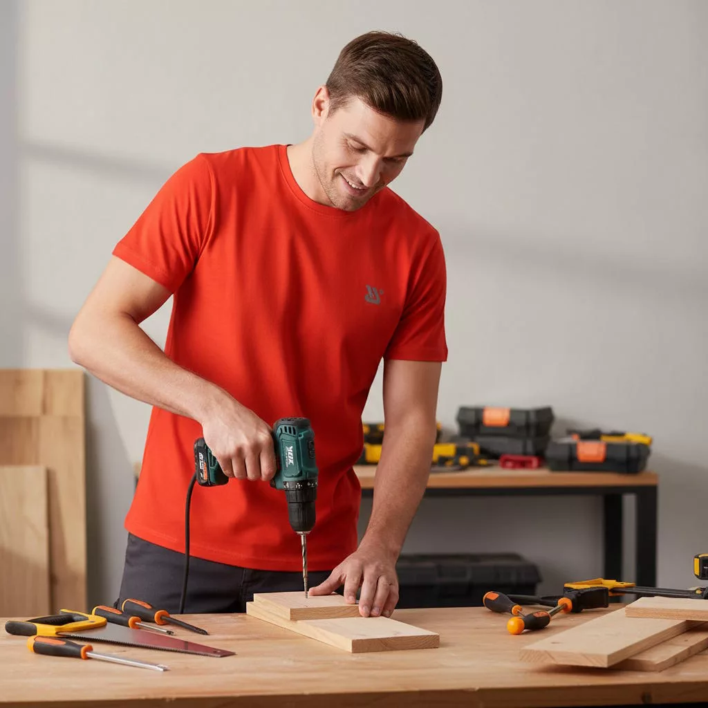 Környakas póló, 100% pamut, megbízható overlock varratokkal, piros színű.