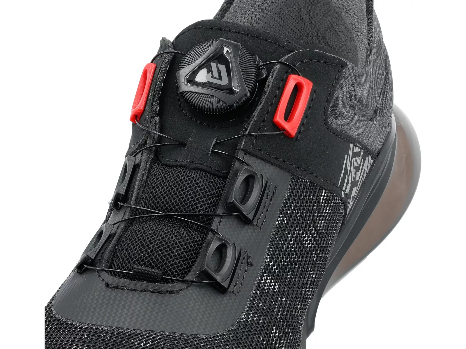 Felsőrész poliészter szövetből készül, a lábujjak feletti területet TPU-réteg védi, és innovatív integrált sarkantyúval rendelkezik, amely PU habból és termoplasztikus PU-ból készült, poliészter szövettel borítva. Ezt a megoldást a legkiválóbb sportcipőkben is megtalálható. A sarok és a felsőrész eleje között mikroszál típusú műbőrből készült pánt választja el. A sportos karaktert tovább erősíti a félautomata fűzők a tekerővel történő zárással.