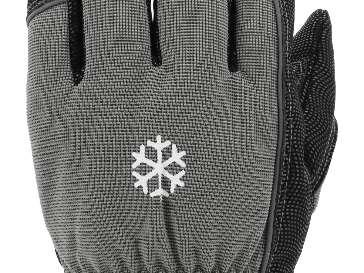 Ez a megerősített, melegen tartó munkavédelmi kesztyű olyan kialakítással rendelkezik, amely a mindennapi feladatok során kiváló fogást és megbízható védelmet nyújt. A fogófelületet a legújabb generációjú szintetikus bőrből készítették, amely nubukhoz hasonló megjelenésű és hullámos mintázatú a csúszás elleni tapadás javítása érdekében. Az anyagban található elasztán növeli a rugalmasságot, ezáltal jelentősen javítja a komfortot és a kezének mozgékonyságát a munkavégzés közben.